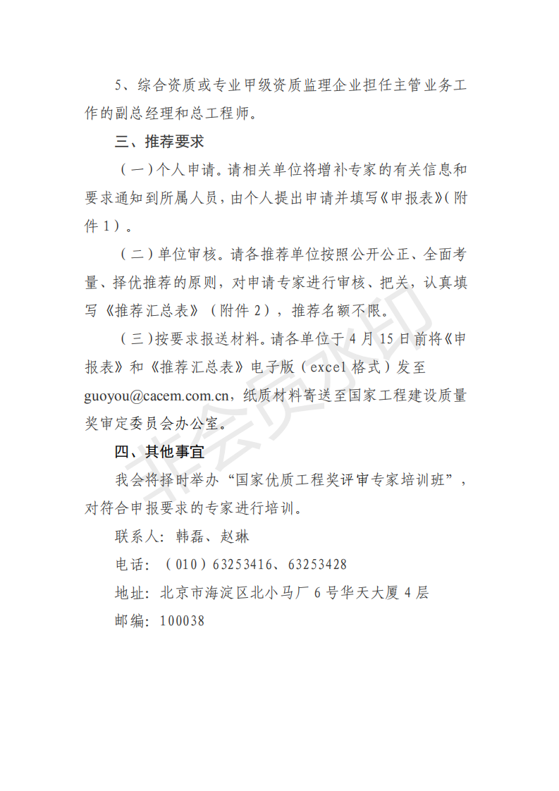 转发《关于推荐国家优质工程奖评审专家的函》的通知