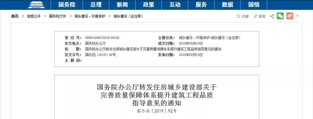 关于完善质量保障体系提升建筑工程品质的指导意见