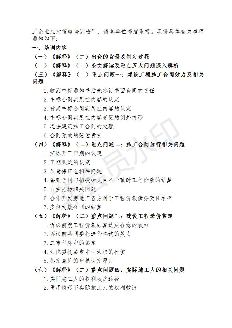 关于举办“新法利刃”—最高院建设工程司法解释(二) 条文精析与施工企业应对策略培训班的通知