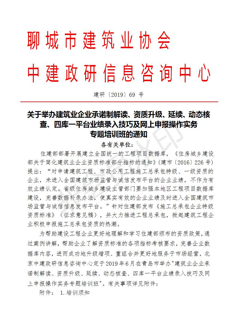 关于举办建筑业企业承诺制解读、资质升级、延续、动态核查、 四库一平台业绩录入技巧及网上申报操作实务 专题培训班的通知