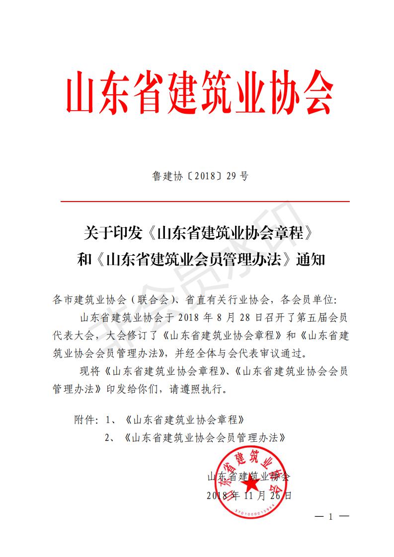 转发关于印发《山东省建筑业协会章程》 和《山东省建筑业会员管理办法》通知